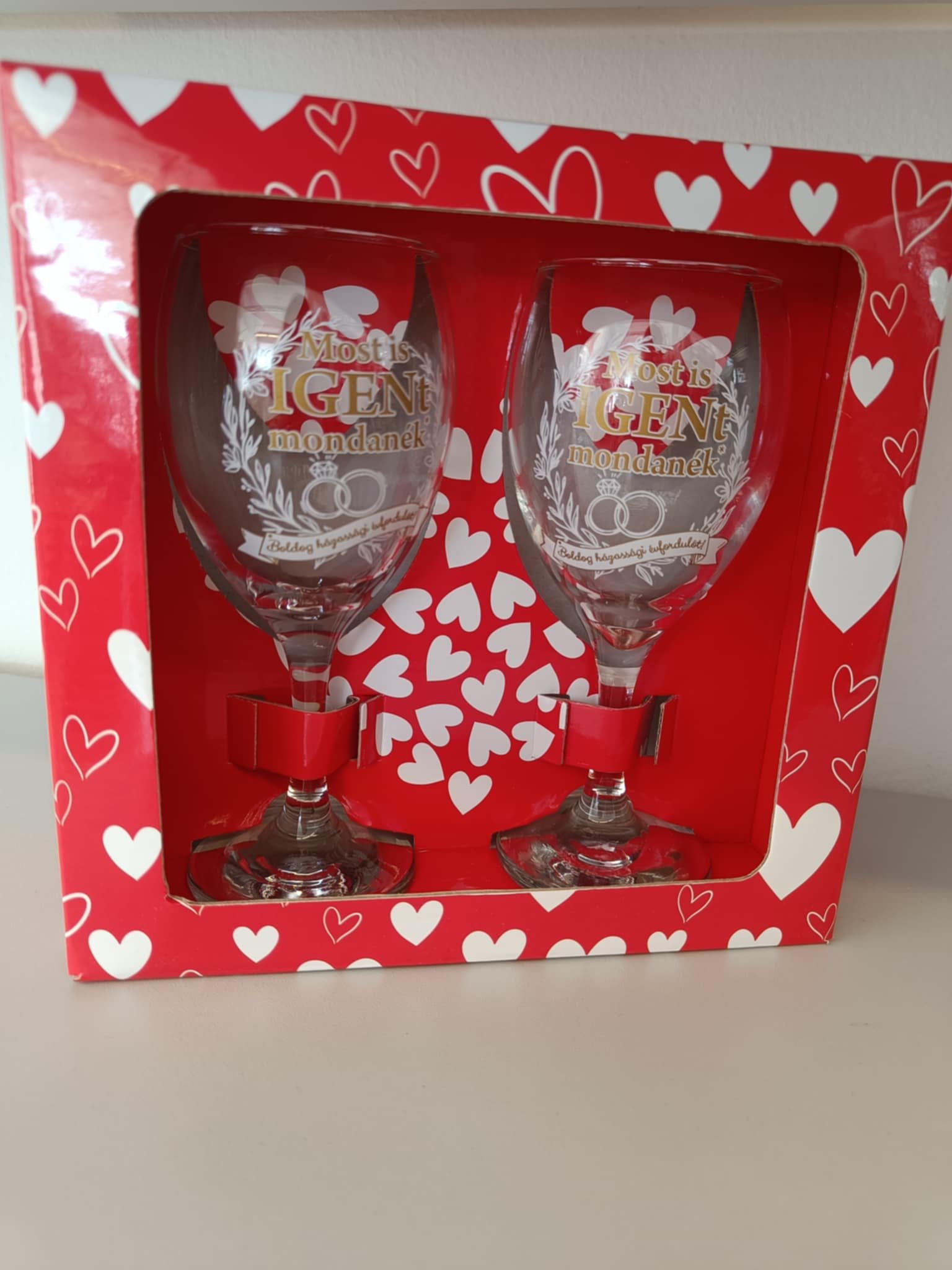 Set 2 pahare vin „Most is igent mondanek” – „Boldog hazassagi evfordulot”, 220 ml, în cutie elegantă