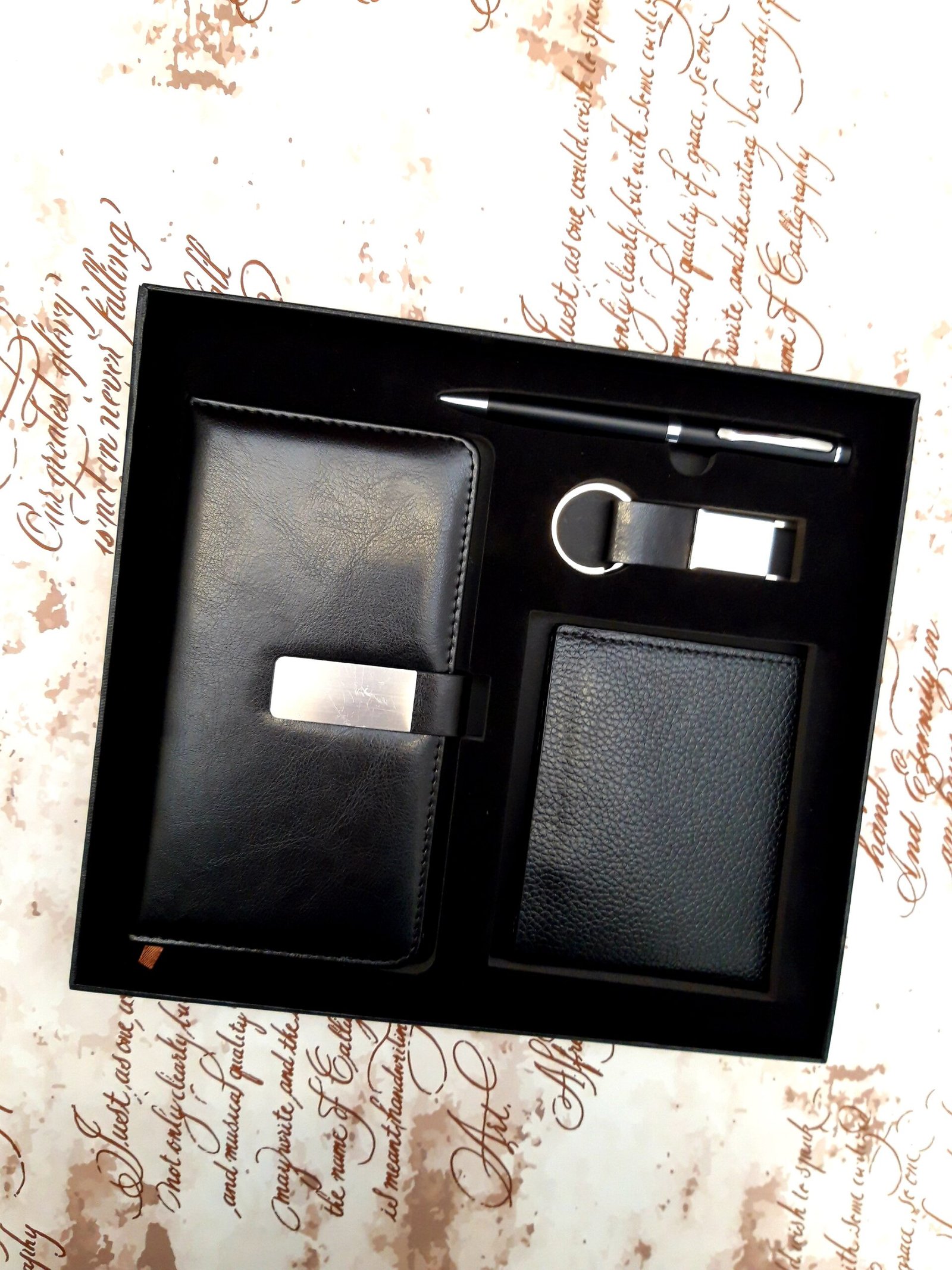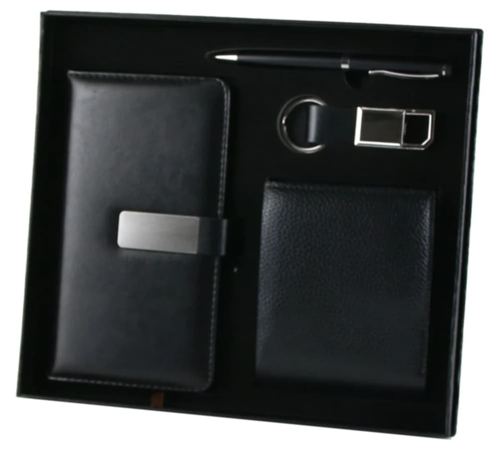 Set cadou pentru bărbați – 4 piese: Agendă, portofel, breloc și pix – eleganță și utilitate într-un cadou complet